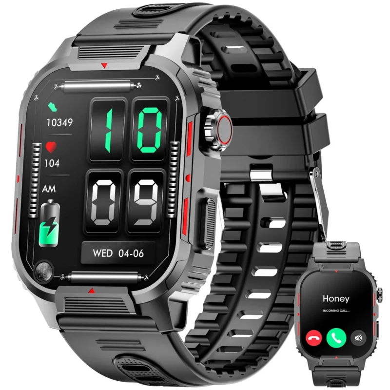 Mingdaln Men’s Military Smart Watch (Answer/Dial Calls), 2.02-inch HD Outdoor Sports Durable Smart Watch for Android Ios (Black)