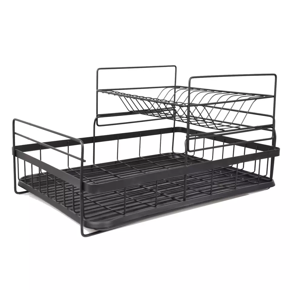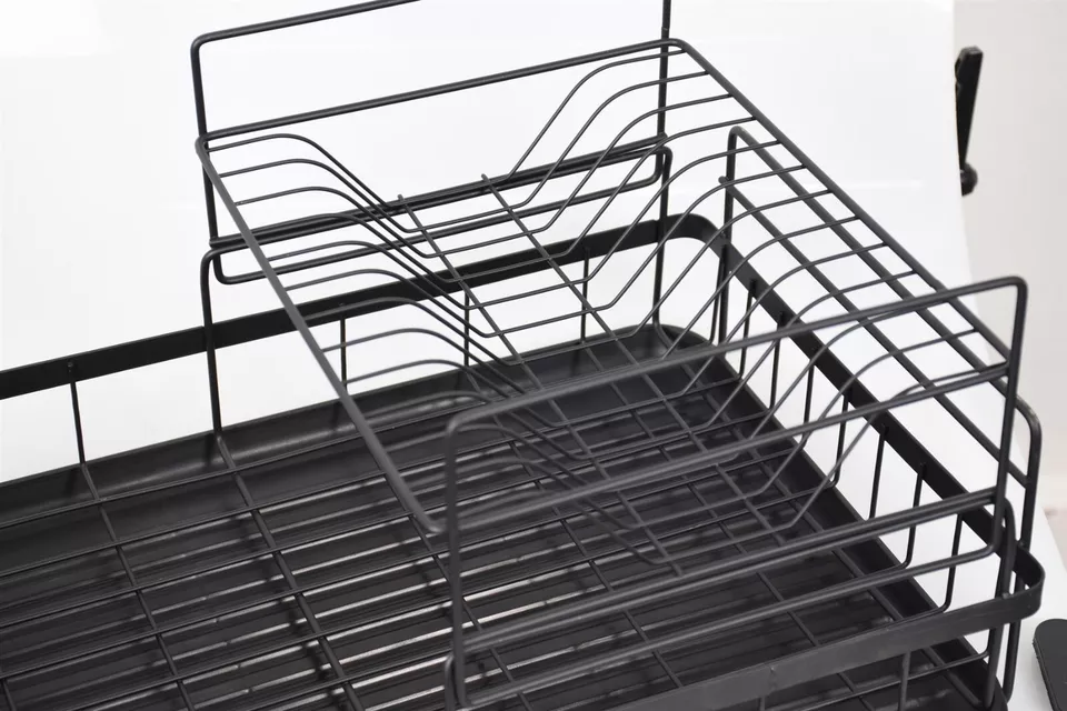 Dish Drainer 2 Tier Kitchen Sink Metal Wire Cutlery Draining Holder Plate Rack