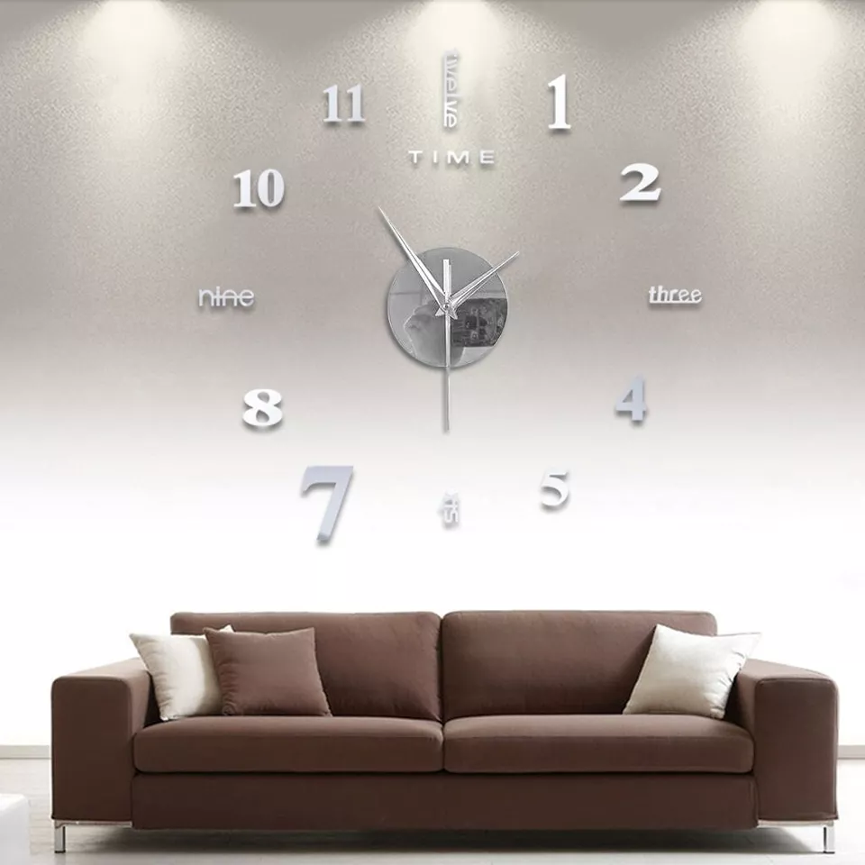 Frameless DIY Wall Mute Clock 3D Mirror Surface Sticker Home Office Decor