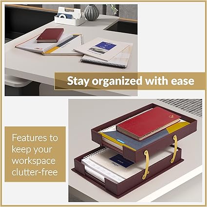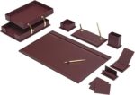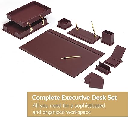 MOOGCO Bonded Set Luxury Leather Desk Pad & Desk Organization Essentials Desk Organizer Leather Desk Organizer (Burgundy)