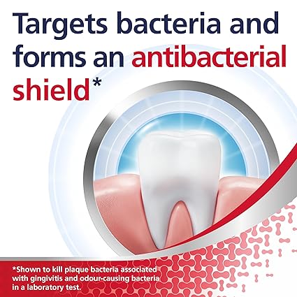 - Antibacterial mouthwash that kills 99.9 percent of plaque bacteria (1)