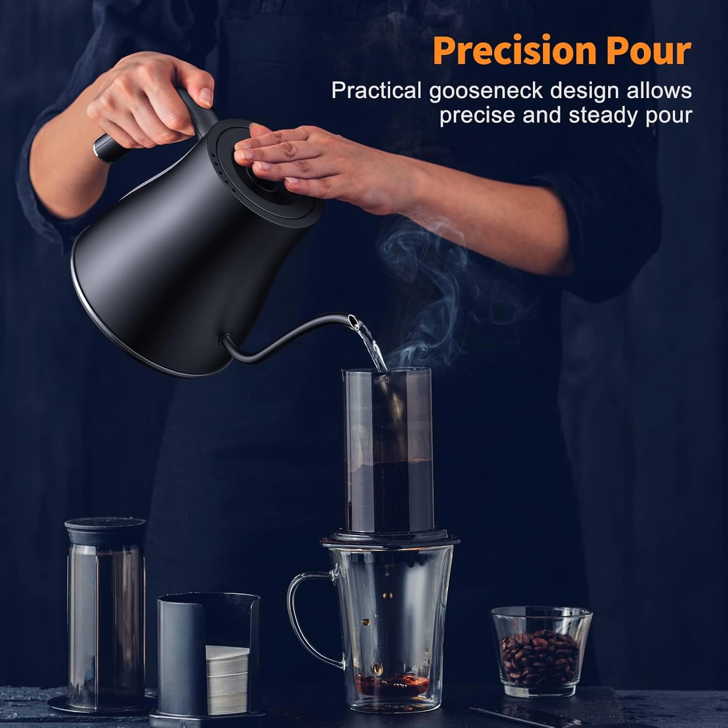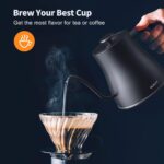 - Fast Boiling – The 1200 watt power gooseneck kettle electric takes just 2-3 minutes to bring a full pot to the boil, saving you as much time as possible. The pour-over kettle is adaptable to all occasions, you can enjoy teatime or coffee time with your family, friends, and team members
