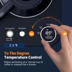 - Precise Tempt Control – Featuring 5 Preset Heat Settings and To-The-Degree Temp Control, Allows you to boil water at a specific temperature to suit a variety of beverages. Variable temperature kettle precisely adjust temperature between 100°F–212°F(±1°F), making this water kettle perfect for blooming pour-over coffee or loose-leaf tea